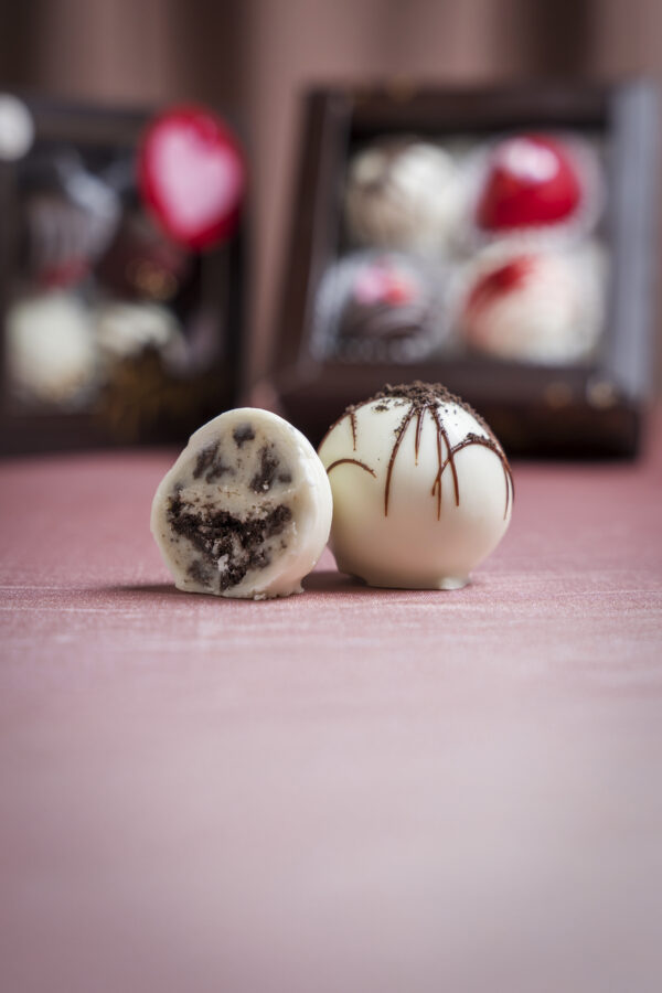 Trufas de chocolate rellenas de distintos sabores: Coco, almedras, café y un nuevo sabor oreo