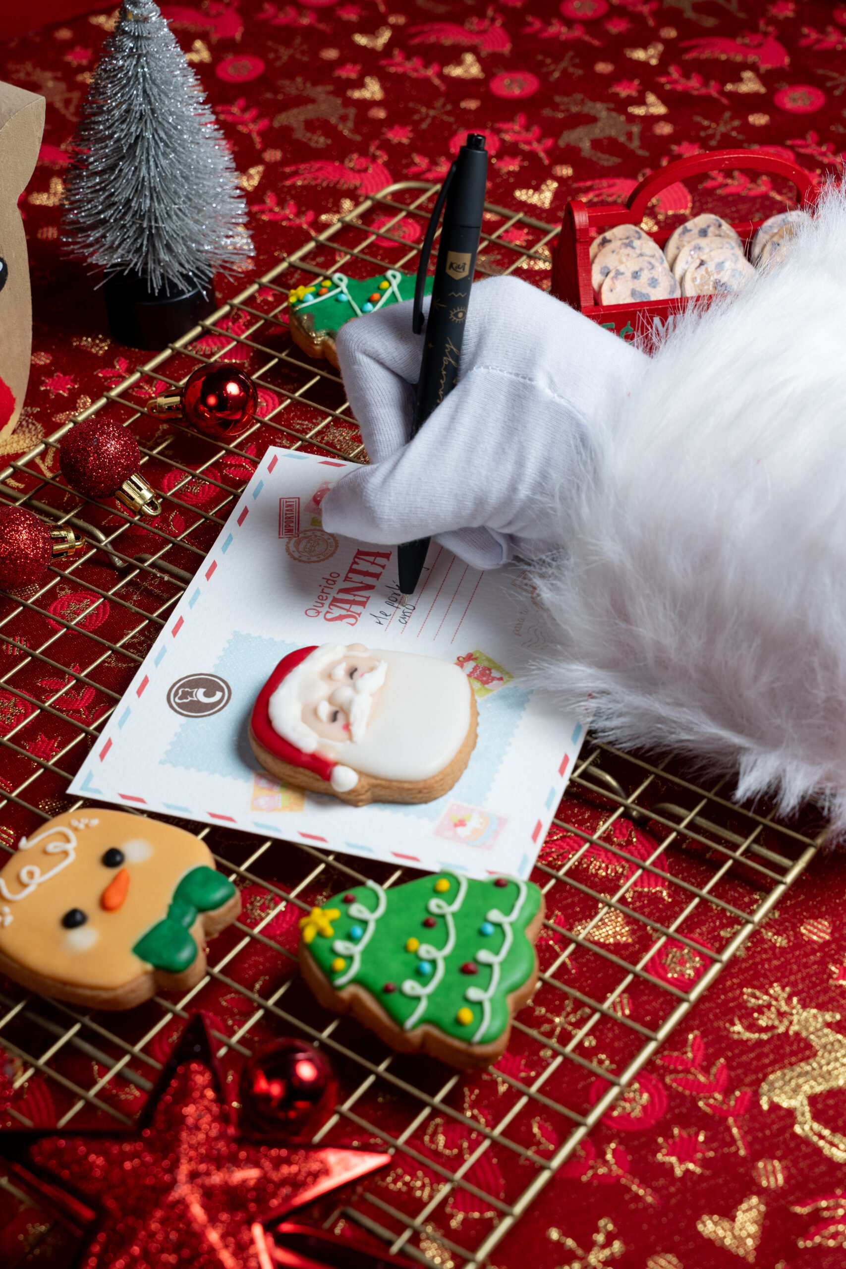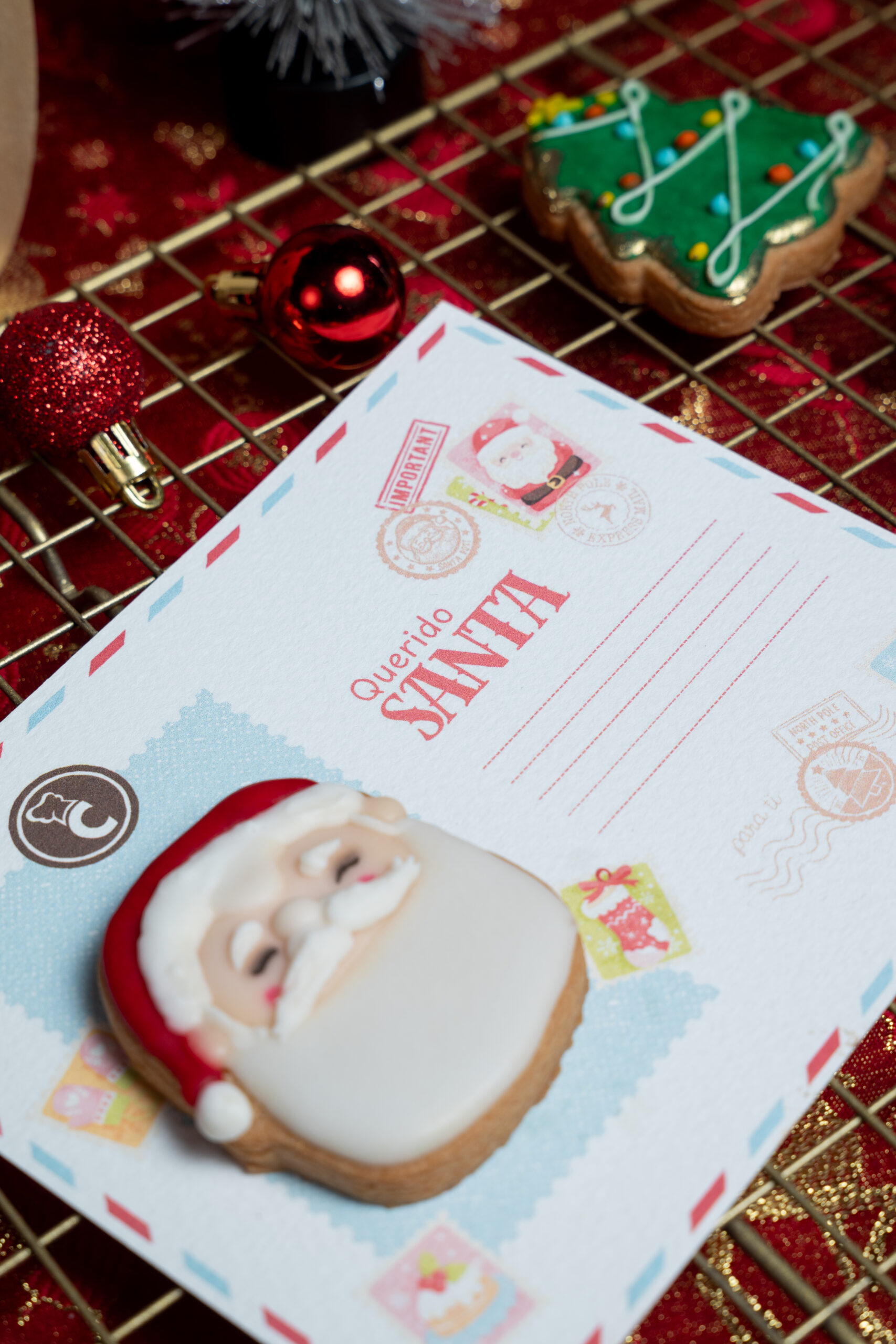 Postal con galleta navideña para escribirle una carta a papa Noel.